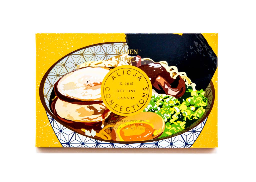 Ramen Bowl is a 33.6% milk chocolate bar. You may think this bar is totally weird: trust us when we say it’s one of our best. Remember crushing up ramen noodles, and eating them dry as a kid? Do that and take a bite of chocolate! Salty and sweet.