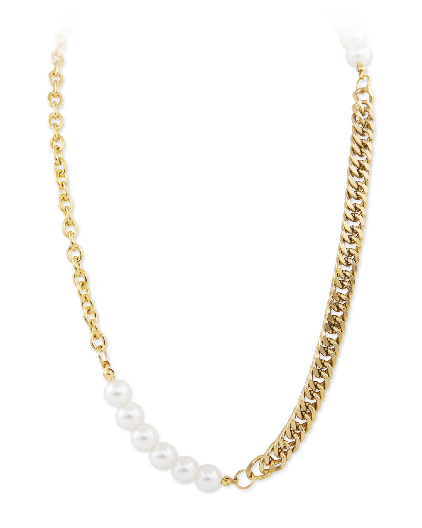 Gold Pearl Necklace by Dapper Bloke is made of premium 316L stainless steel and acrylic set pearls.