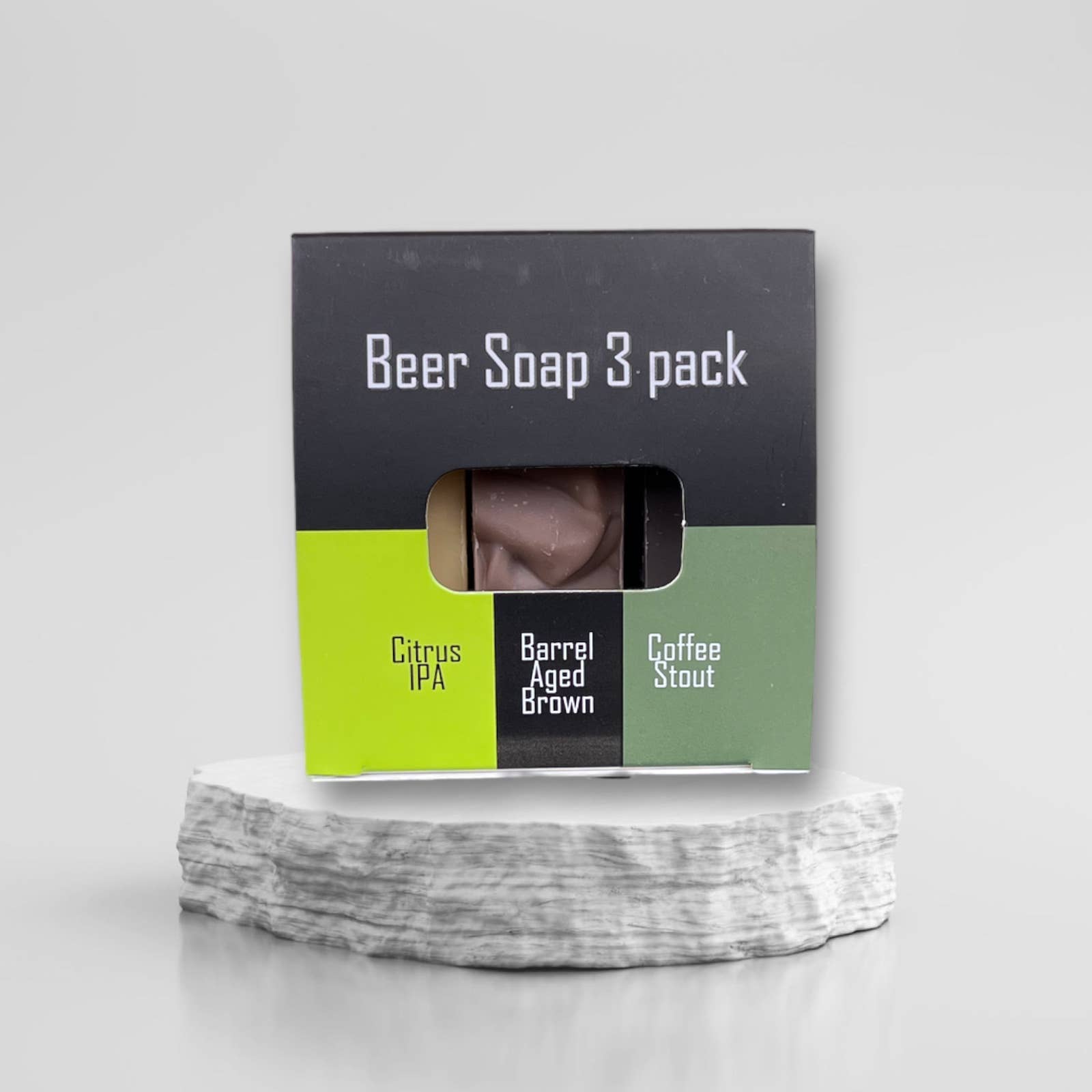 This 3 pack contains our 3 core beer soaps: Citrus , Barrel Aged Brown Ale and Coffee Stout.