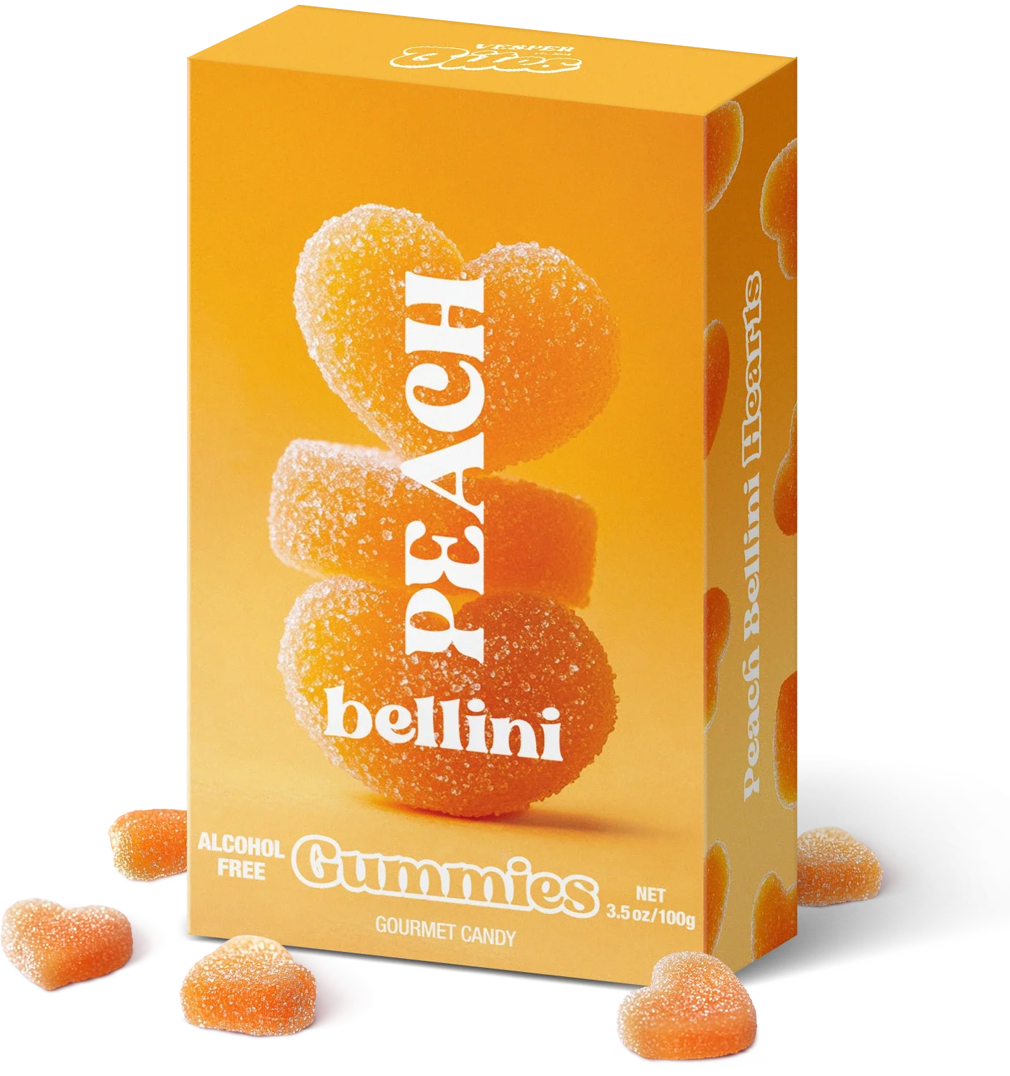 Heart-shaped gummies bursting with juicy peach flavor with a balanced sweet finish —perfect for celebrations, gifting, or indulging in a refreshing treat yourself! These chewy, fruit-forward treats are completely alcohol-free.